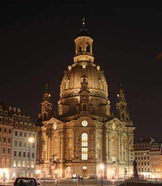 noch mal zur Frauenkirche für Nachtaufnahmen. Mit dem dunklen Himmel